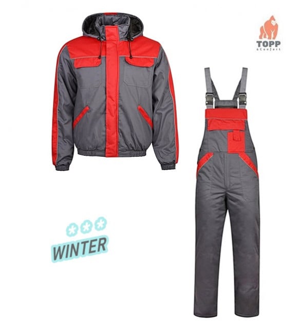 S alopeta de iarna vatuita costum jacheta cu pantalon pieptar Imbracaminte fabricata din bumbac 260 gr si captuseala de 200 gr Insertie dunga reflectorizanta Partea de jos si manecile cu elastic Culoare gri/rosu . Pentru varianta costum salopeta bleumarin/albastru LINK AICI Marimi M-4XL