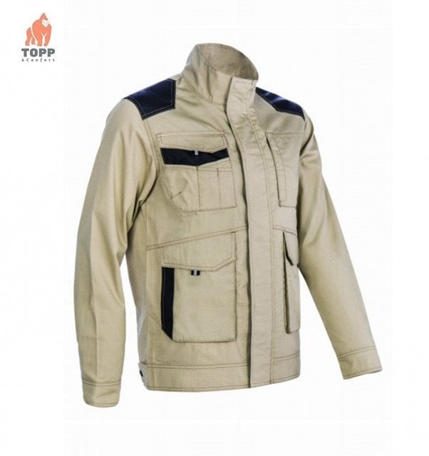 Jacheta lucru primavara-vara rezistenta Descriere – jacheta cu grosime de 240g /m2, din 35% bumbac si 65% poliester – fibra ripstop – datorita tesaturii speciale ripstop imbracamintea se agata si se rupe foarte greu – insertii de Oxford PES, rezistent la abraziune, in zonele utilizate mai intens: