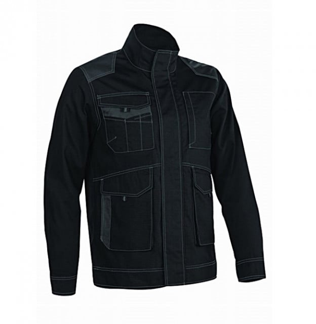 Jacheta lucru ripstop rezistenta – jacheta cu grosime de 240g /m2, din 35% bumbac si 65% poliester – ripstop – insertii de Oxford PES, rezistent la abraziune, in zonele utilizate mai intens: umeri, jurul buzunarelor – jacheta in doua culori cu croi drept , indeal pentru instalatori, muncitori –