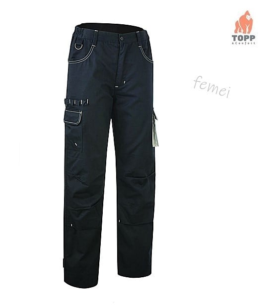 Pantaloni talie MISTI femei – albastru Descriere – pantaloni talie cu grosime de 245 g/m2, material rezistent la abraziune – compozitie : fibre impletite : 60% bumbac + 40% poliester – pantaloni bicolor cu croiul regular de femei – gaici rezistente – Betelie elastică în părțile laterale + 5 inele