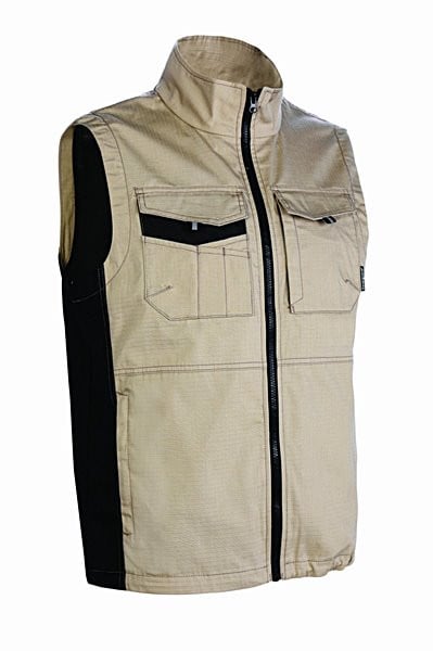 Vesta de lucru stil American bej si negru Acest model face parte din cele mai recente modele salopete ce se preteaza domeniiilor cu solicitare ridicata asigurand un design aparte Material ripstop foarte modern 35 % cotton, 65 % polyester- 240g / m² Material puternic rezistent si in acelasi timp