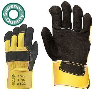 Manusi din piele groasa neagra spalt bovina . • piele şpalt bovină, de calitate, neagră, groasă • dosul palmei și manșeta din material textil rezistent • protectori pentru artere, unghi și osul pumnului • căptușeala palmei din bumbac, moale • mărime: 10 • ambalaj: 120/12 Standard UE: EN 420, EN