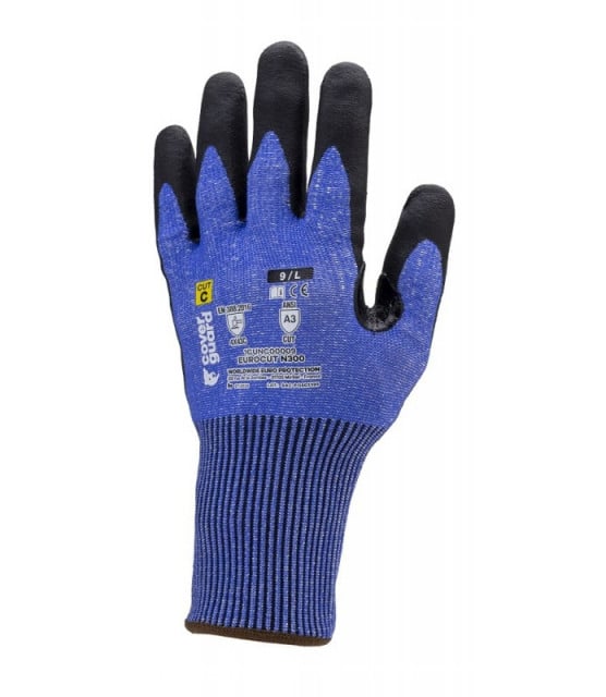 Manusi de protectie – Anti taiere si anti rupere- EUROCUT N300 Descriere – manusi de protectie cu maxima rezistenta la rupere , abraziune si rezistenta la taiere TDM la nivel D, cu priza excelenta – densitatea tesatudii de 13 , compozitie de multifibre (HDPE, poliester si spandex) – palma imersata