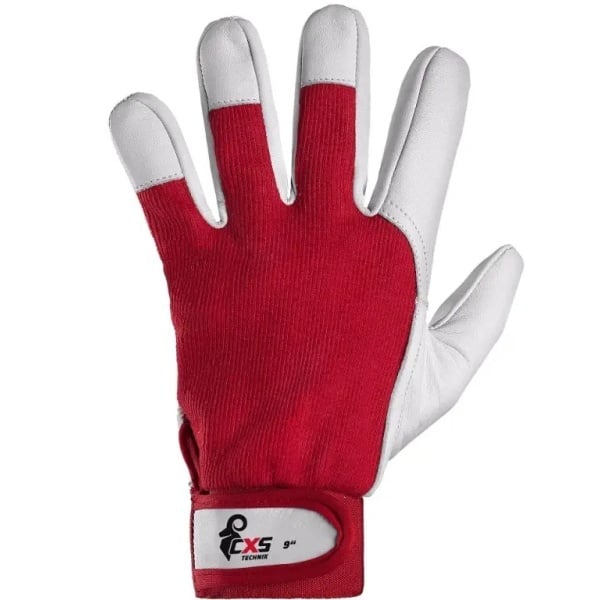 Manusi de protectie moderne piele capra de manipulare gri cu rosu Mãnuși de lucru cu rezistenta medie si pret excelent Închidere cu scai. Mãnuși pentru diverse tipuri de lucrãri. Marimi: 8-9-10-11