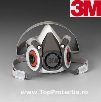 Semi-masca de protectie 3M ® seria 6000 Marimea L cu codul 6300 Cel mai frecvent se foloseste M cu codul 6200 cauciuc moale •2 filtre laterale: cu două supape de inspirare, rezistenţă respiratorie redusă • supapă de expirare Cool Flow™ împotriva încălzirii interioare, cu membrană pentru vorbire •